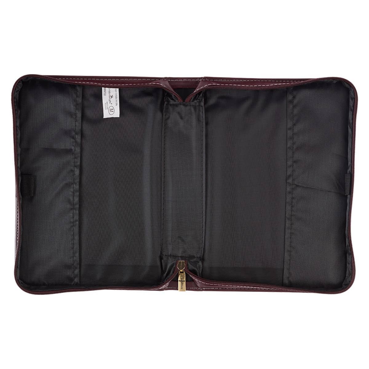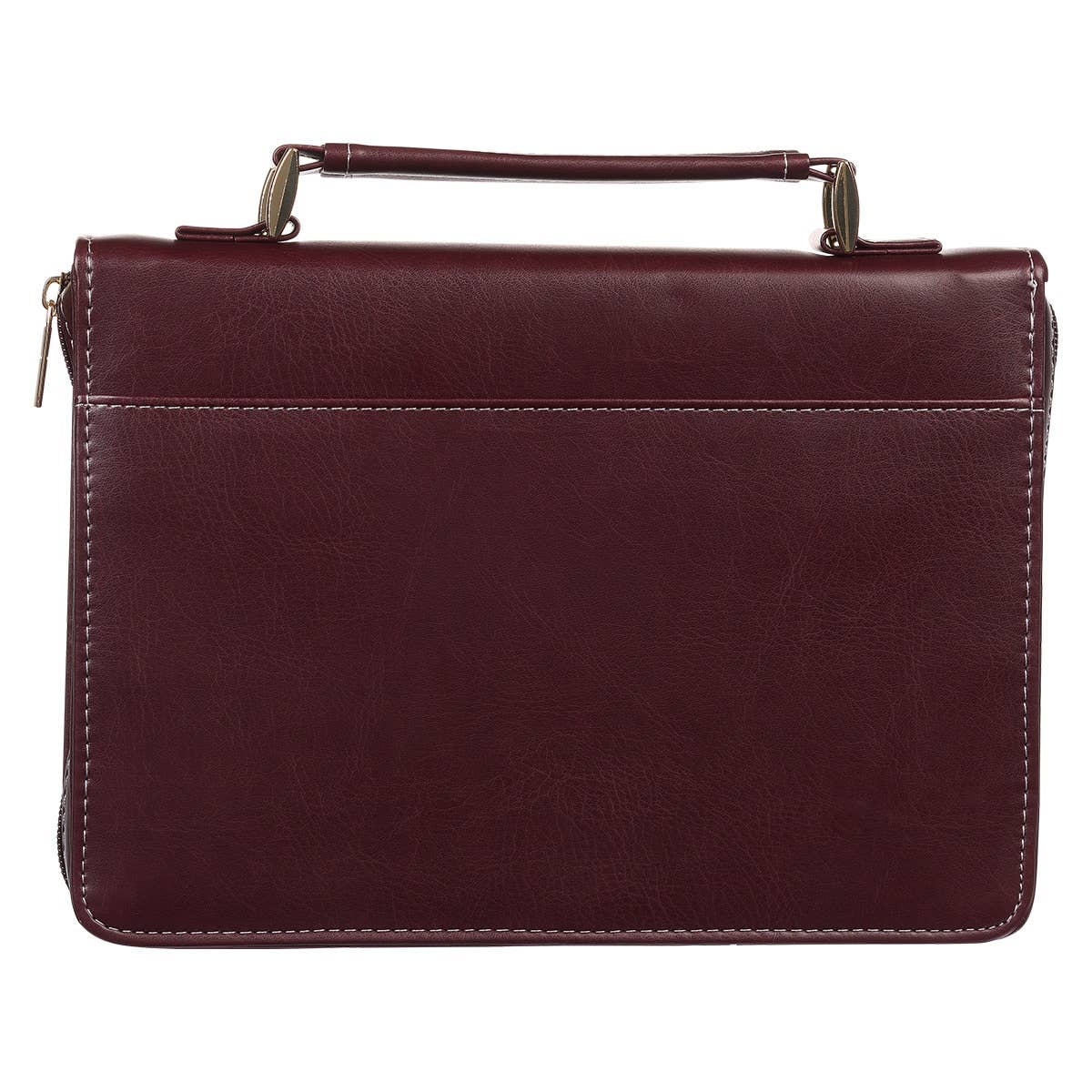 Pause to rest in the truth of God’s steadfastness as you open the beautifully designed Be Still and Know Neutral Florals Faux Leather Fashion Bible Cover for your daily Bible reading time.  Printed neutral-toned floral design with gray, tan, and cream-colored flowers, Be Still and Know Neutral Florals Collection, Fashion Bible cover, Two-tone design, Burgundy faux leather back, Screen-printed fabric front panel, Lay-flat carry handle, Metal hardware, Exterior back slip pocket, Cross-engraved metal zipper pull, 2 interior pen loops, Available in medium, large, and extra-large, Refer to Image Carousel for Bible Cover Sizing Chart