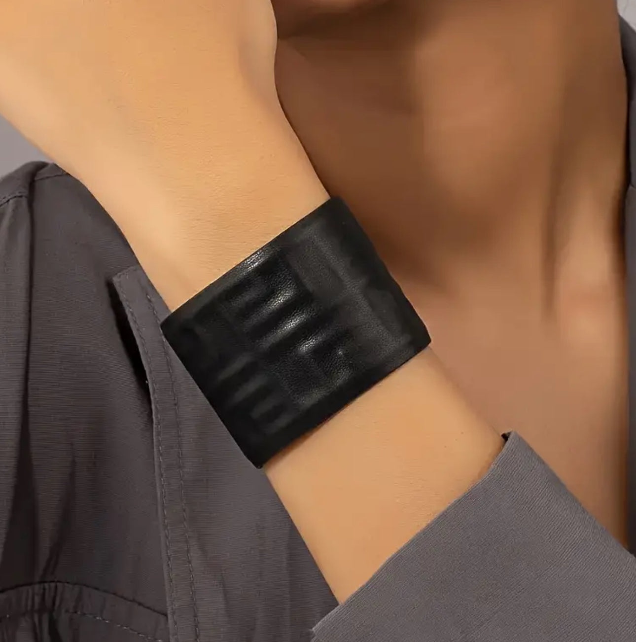 Add a touch of bohemian flair to your outfit with our Boho Chic Faux Leather Wide Cuff Bracelet! This boho textured bangle is designed for women who love to express their unique style. The faux leather material gives it an edgy yet sophisticated look that is perfect for any occasion.