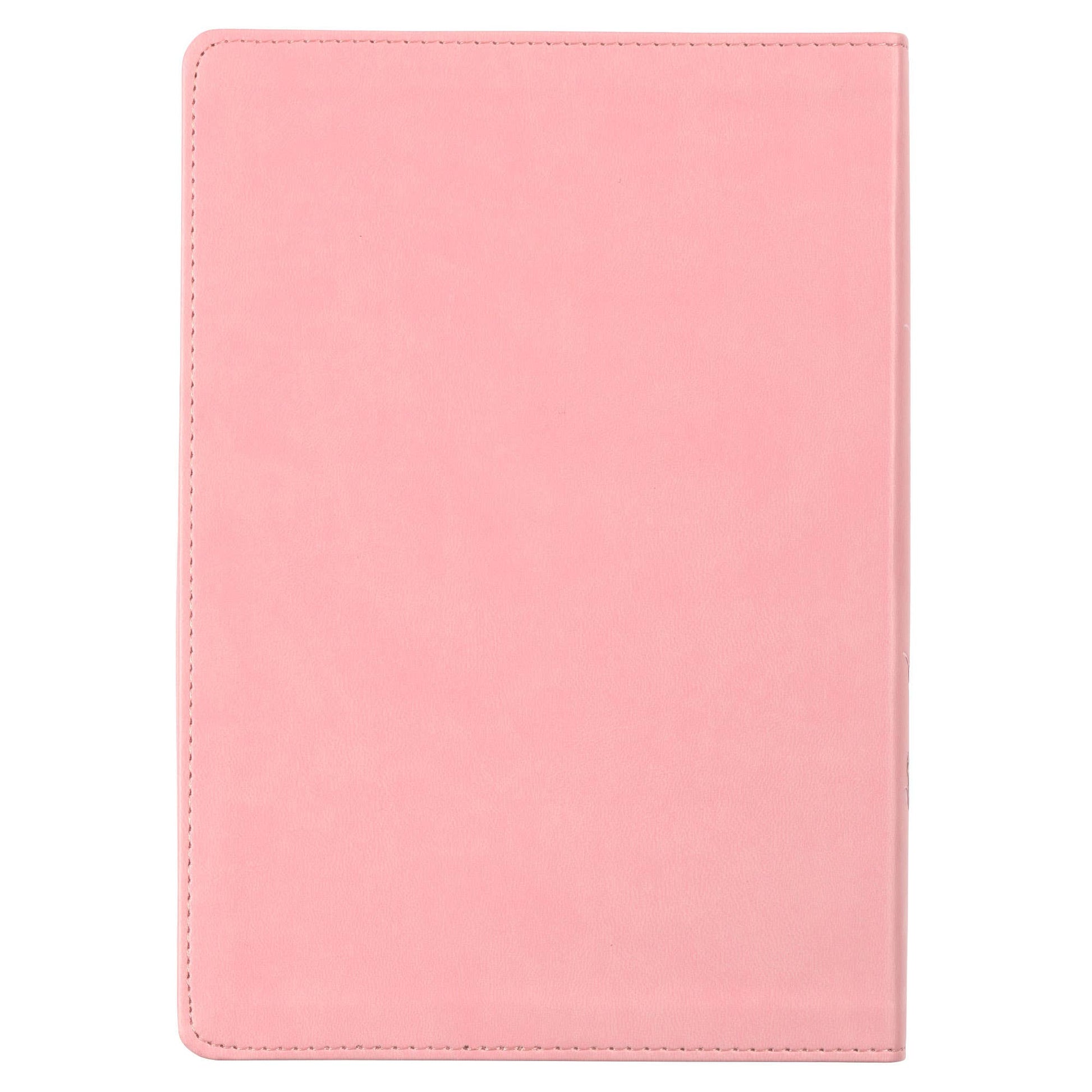 By reading from the Sunrise Pink Floral Faux Leather NLT Everyday Devotional Bible for Women, you will embark on a year-long journey to deepen your faith and kindle a more authentic relationship with God. Heat-debossed branch cover design, Sunrise pink faux leather, Gold-foiled outlines, Gold-foiled title, New Living Translation, Satin ribbon marker, Two-color interior, 1824 gold gilt-edged pages, Single column format, Presentation page, Daily portions from Psalms, Proverbs, Old and New Testament, 730 inspiring devotional insights by Nancy Taylor, Lay-flat Smyth-sewn binding, 10-point text, Packaged in a full-color printed cardstock sleeve, Size: 9.6" x 6.8" x 1.8" (244 x 173 x 46mm)