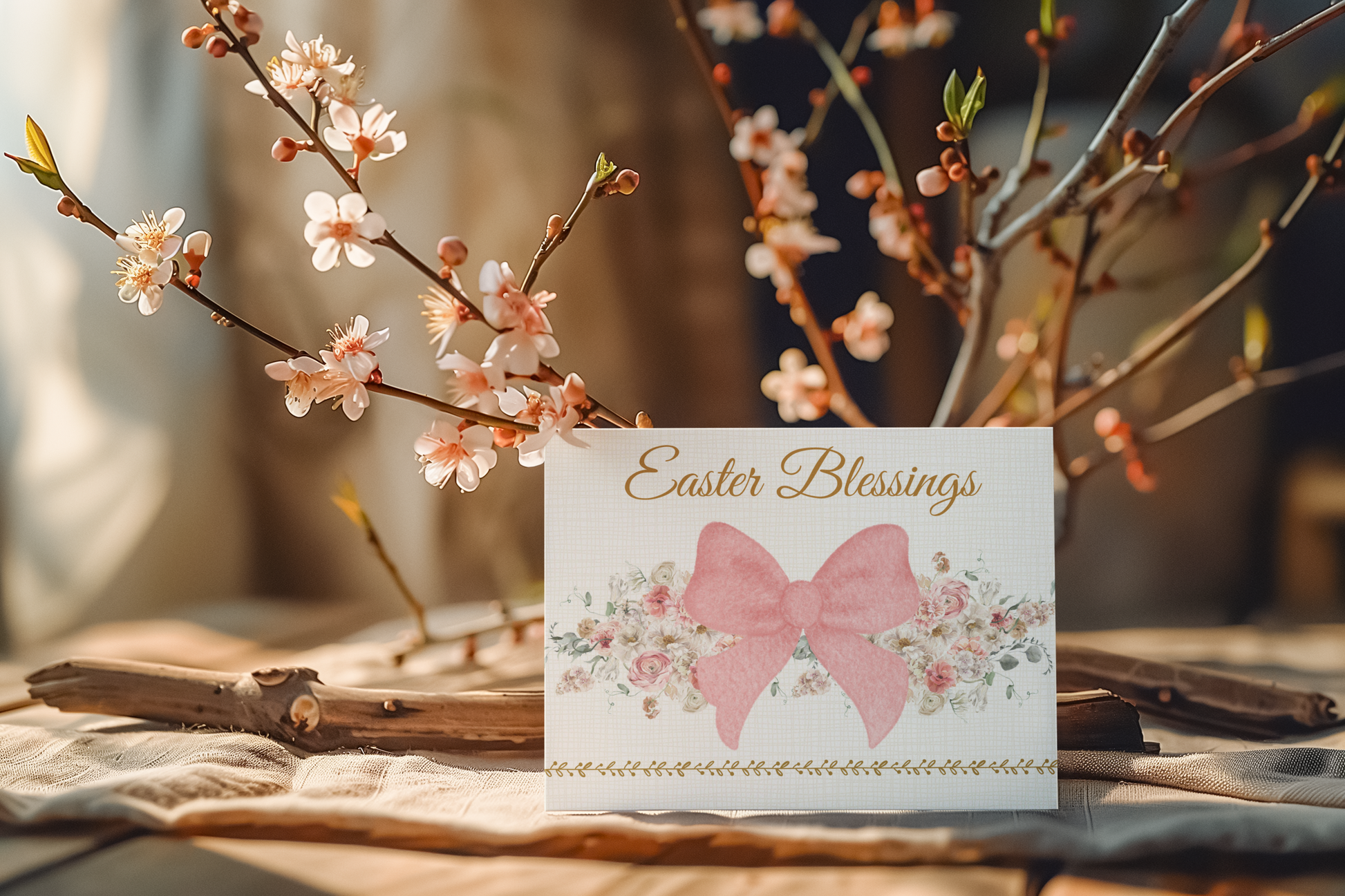 Easter Greeting Cards Customizable Spring Bow Printed Set of 5 Elegant Easter Notes Personalizable Greeting Card with Message Inside