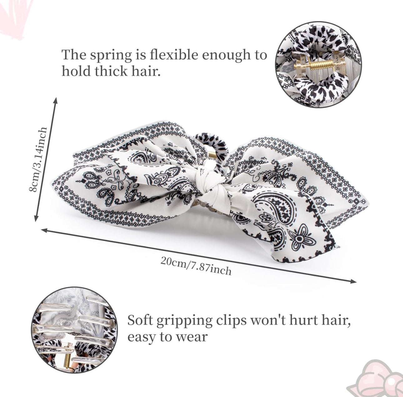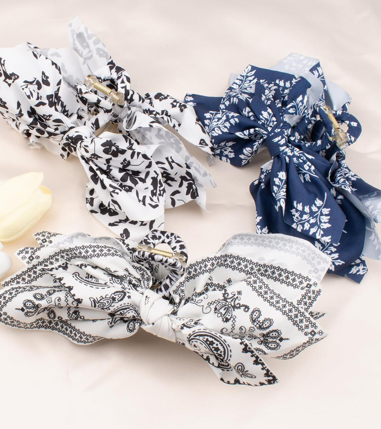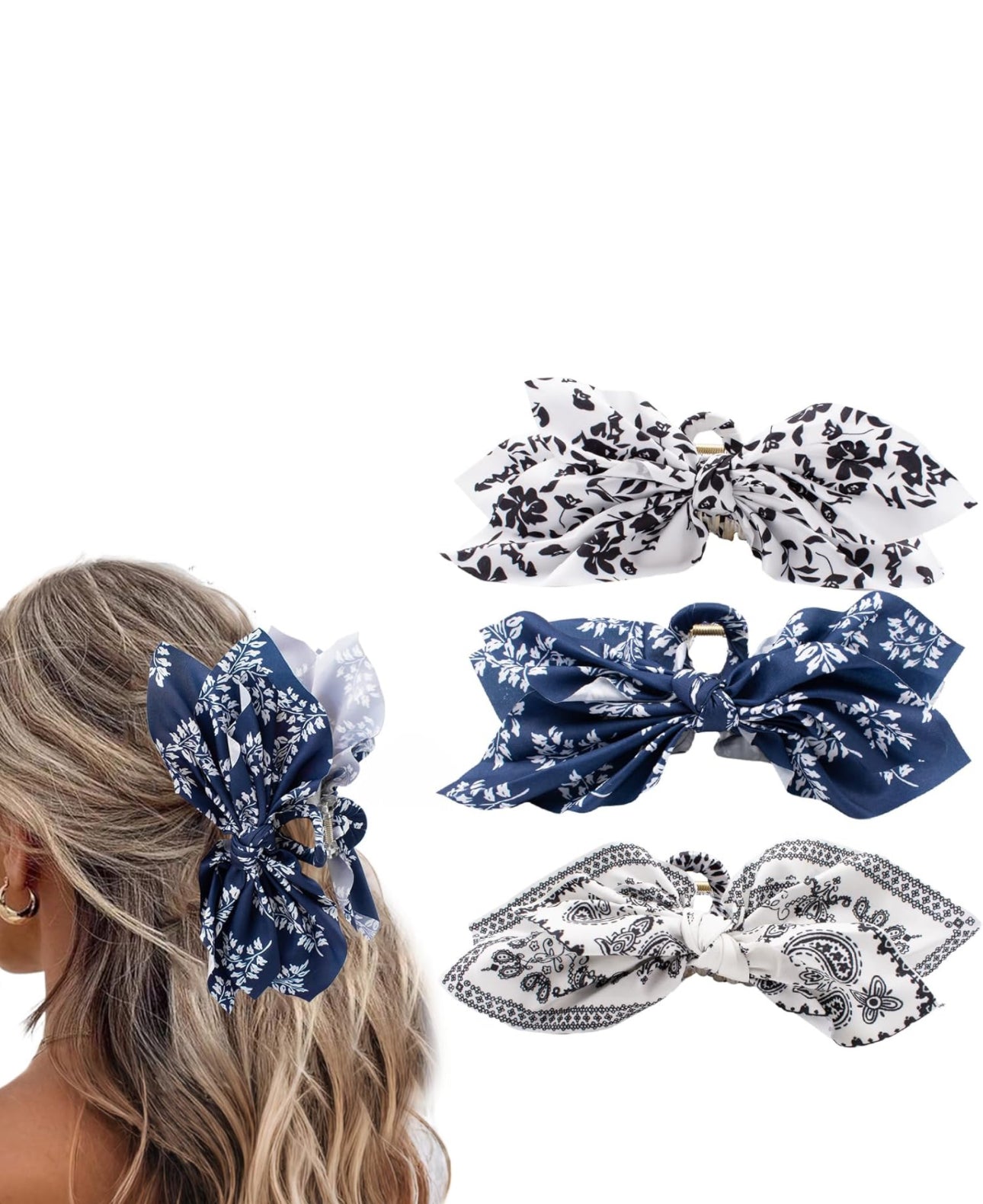 Get ready to level up your hair game with our fabulous Hair Clips Claw Clip collection! Featuring big hair bows in trendy colors of navy blue, black and white paisley, and black and white floral.  These beautiful butterfly hair clips are perfect for women and girls looking to add a touch of flair to their hairstyles.