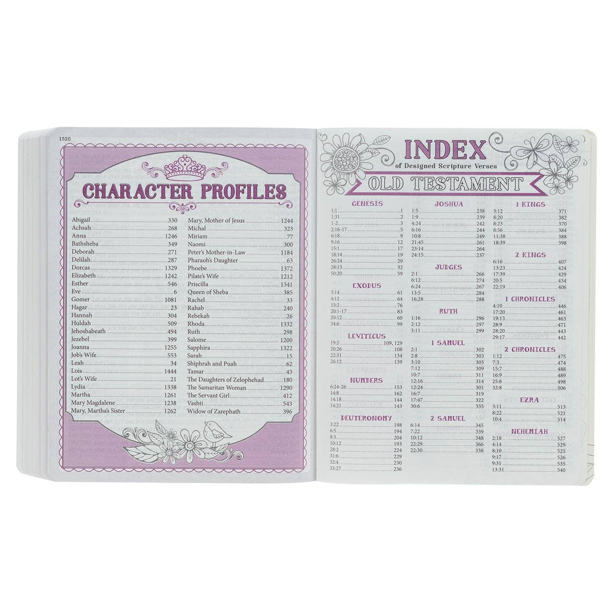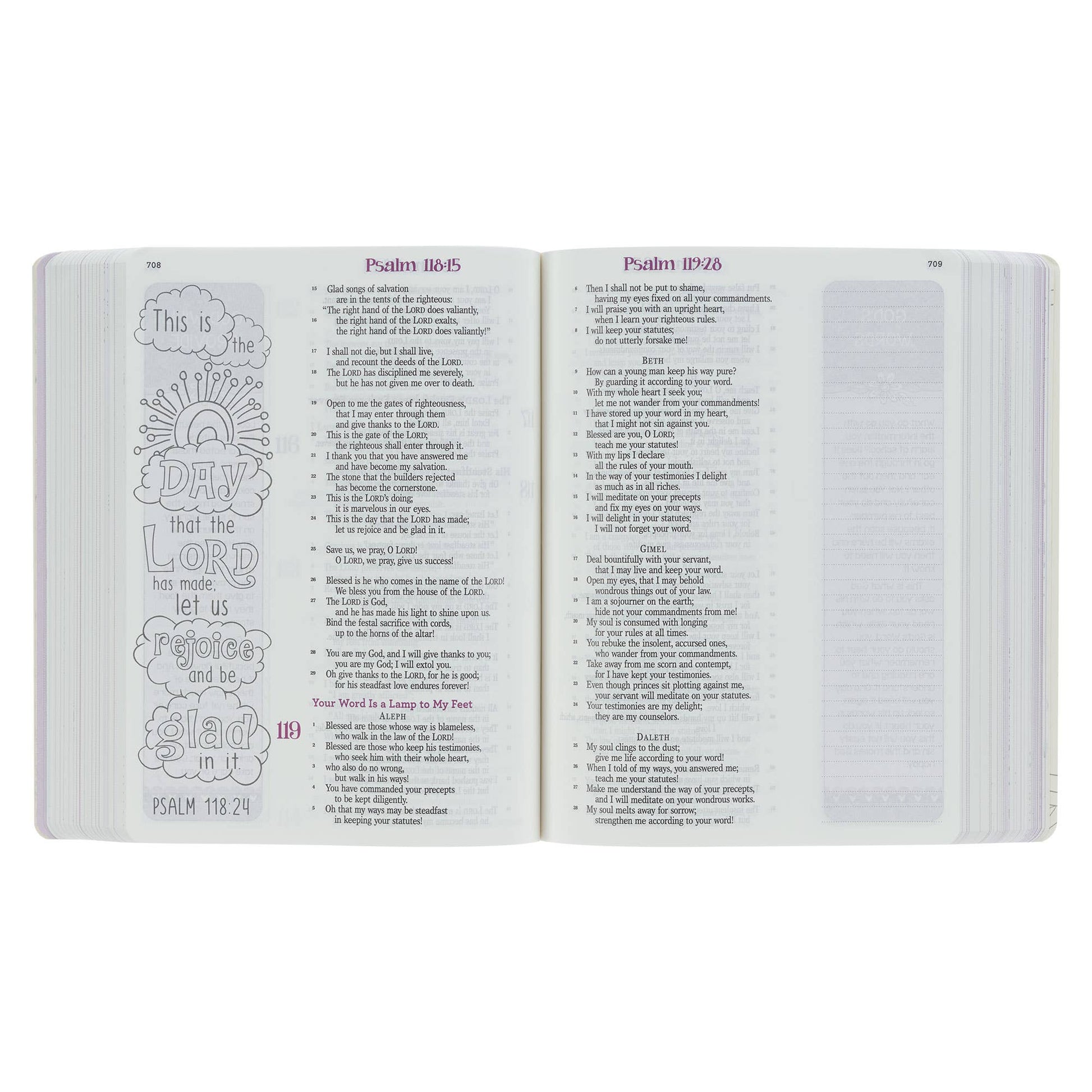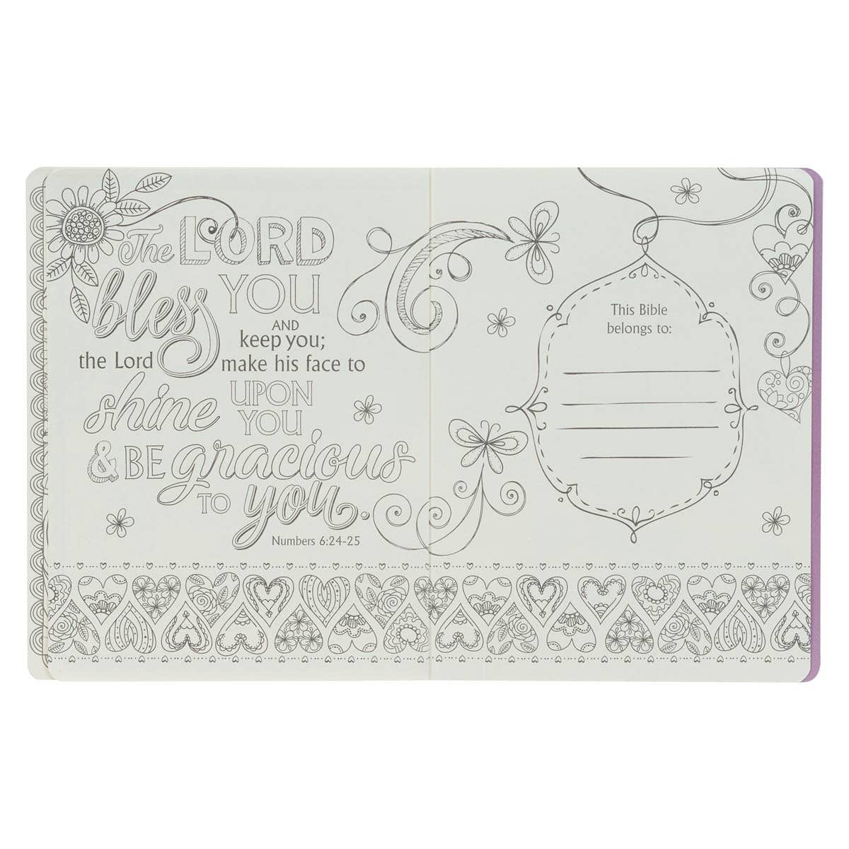 Encourage your young princess to live out her creativity and learn about her faith by working through the Pink Floral Heart Flexcover My Creative Bible for Girls—an illustrated journaling Bible specially designed for young girls who love to add color to everything they do.   Complete ESV text, Flexcover, Pink softcover, Silver-foiled accents and UV spot varnishing on cover, 2 -inch margins, 1548 pages, 66 memory verses, 366 devotions 50 women of the Bible profiles, 300 lined illustrations, 12 full-page Scripture prayers, 20 full-page Scripture verses, Illustrated presentation page for gift-giving, Shrink-wrapped, Size: 7.9" x 6.2" x 1.6" (201 x 157 x 41mm)