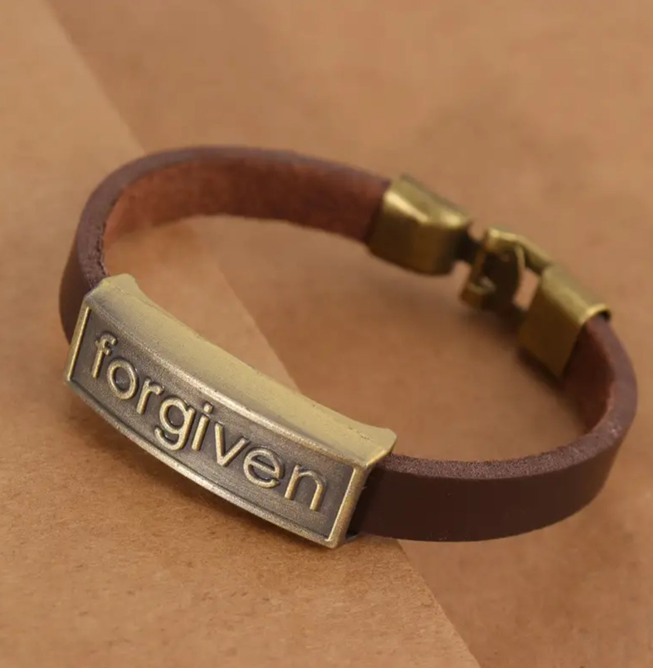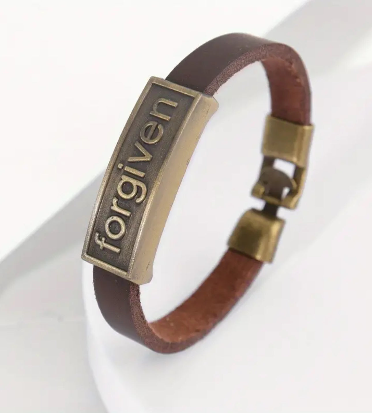 ‘Forgiven’ Faux Leather Bracelett for men or women