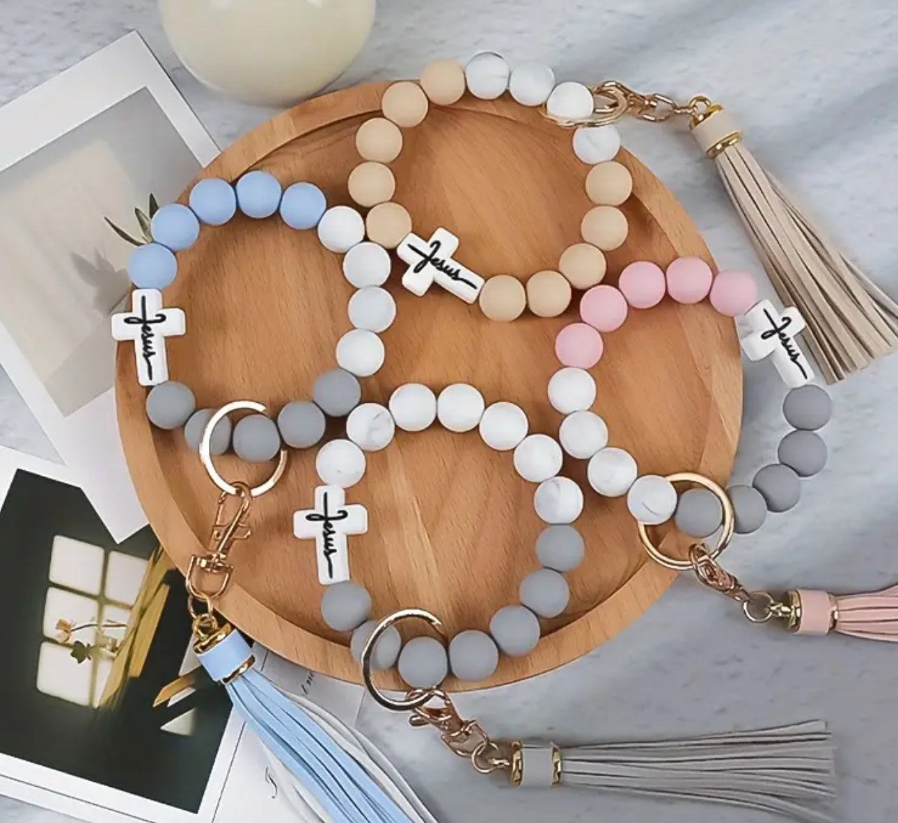 Brighten up your day with our Pastel Silicone Keychains! These playful wrist keychains feature vibrant pastel beads, a trendy tassel, and a charming Jesus charm. With a secure lobster clasp, they keep your keys stylish and safe! Perfect as a gift for friends, family, or yourself—celebrate every moment with flair. Grab yours and let your personality shine!