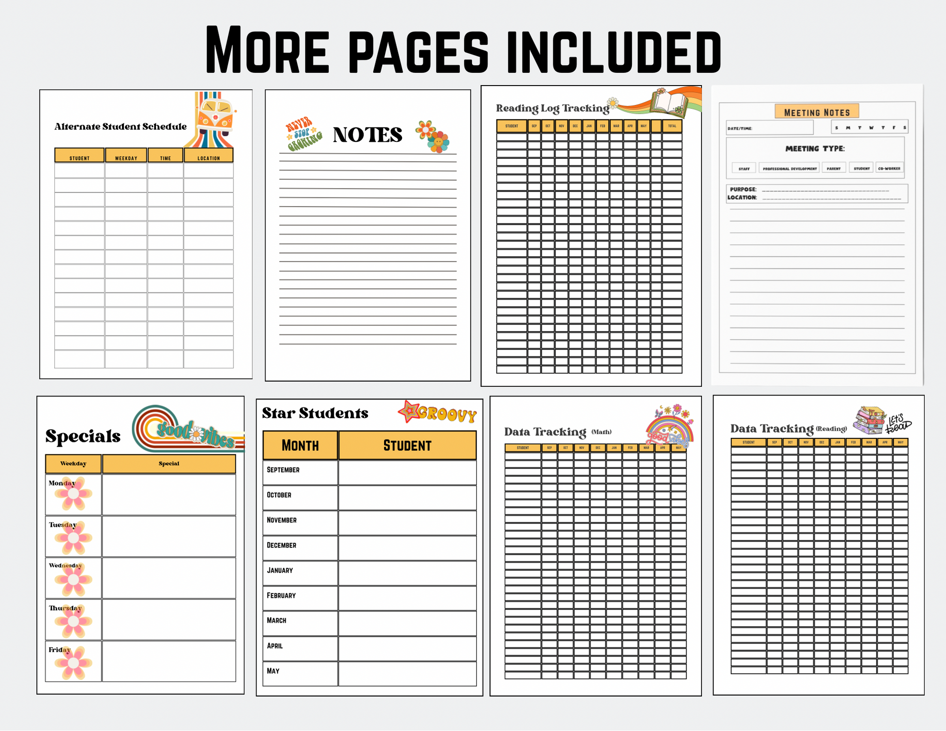 In addition to its high-quality construction, this planner includes practical features such as monthly and weekly planning pages, record-keeping sections, student and parent information pages, notes, meeting notes section, and a laminated pocket divider for storing important documents. The vibrant carnival -themed design adds a touch of fun and creativity to your planning routine, making it a joy to use every day.