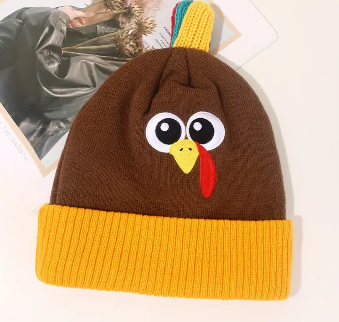 Stay festive and cozy this Thanksgiving with our Thanksgiving Turkey Beanie. This adorable knit hat features a fun cartoon embroidery of a turkey with a cockscomb in a cheerful yellow color, perfect for adding a touch of holiday spirit to your outfit. The lightweight design and elastic fit make it comfortable to wear for both women and men. Keep warm and stylish during the chilly autumn days with this warm beanie that is sure to bring a smile to your face. Whether you're heading out for a brisk walk or gathering with loved ones for a Thanksgiving feast, this hat is the perfect accessory. Embrace the holiday season in style with our Thanksgiving Turkey Beanie.