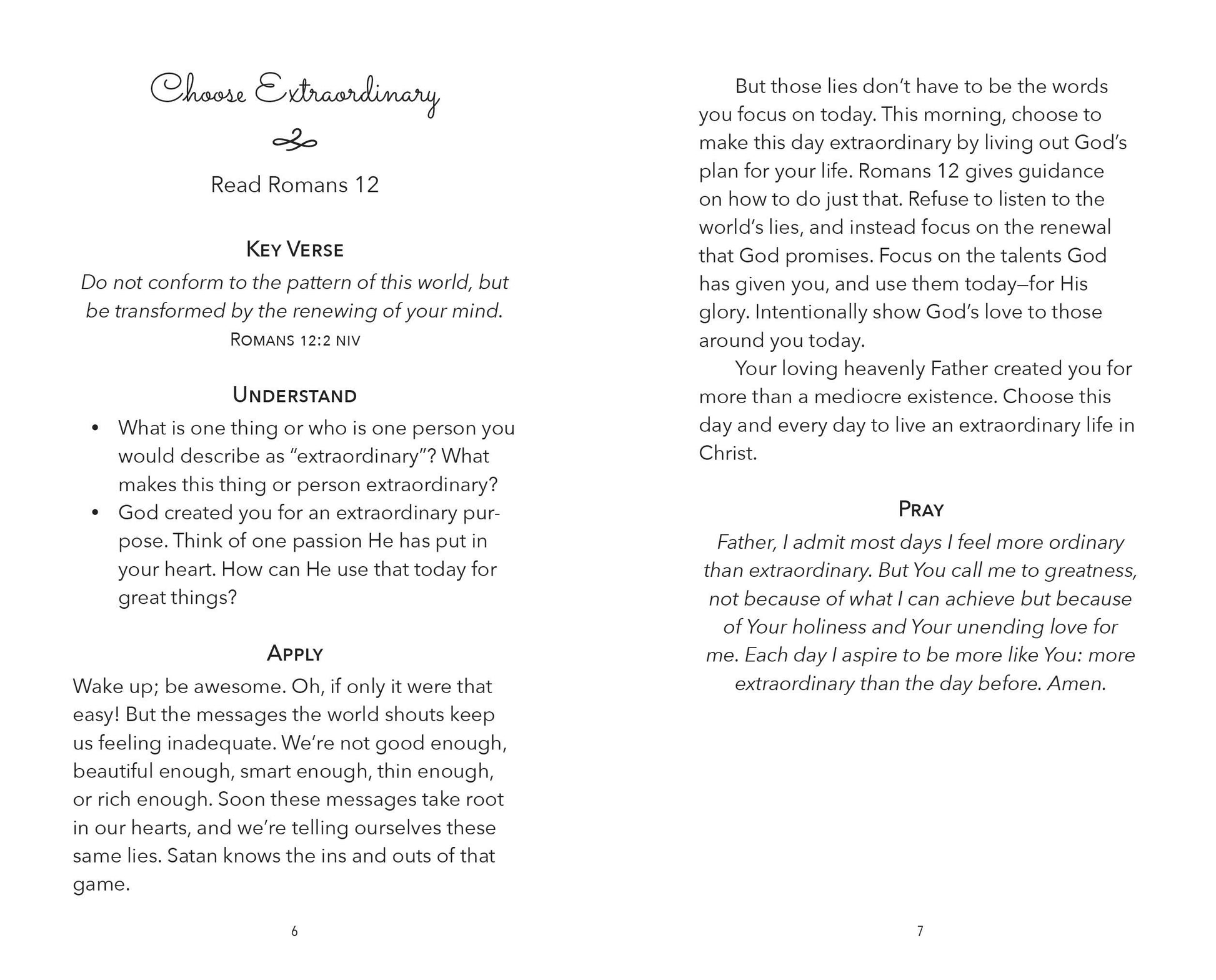 Do you find it hard to make time for Bible study? You intend to do it, but before you know it, another week has passed and you haven’t picked up God’s Word. This book provides simple tools for you to open the Bible in the morning and dig into God's Word—even if you only have five minutes! Minutes 1–2: Read a few verses pulled from a lengthier passage. If time allows, read the full passage listed for you in each Bible study. Minute 3: Understand. Ponder thoughtful questions designed to help you apply the verses from the Bible to your own life. Consider these throughout your day as well. Minute 4: Apply. Read a brief devotional based on the scripture you read. Think about what you are learning and how you can apply the scriptural truths to your own life. Minute 5: Pray. A prayer starter will help you to begin a time of conversation with God. The 5-Minute Bible Study for Women: Mornings in God's Word will help you establish the discipline of consistent study of scripture. You will